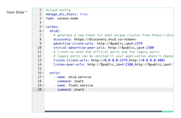 You can provide raw cloud-config data to Flatcar Container Linux via the Exoscale portal or via the Exoscale compute API .